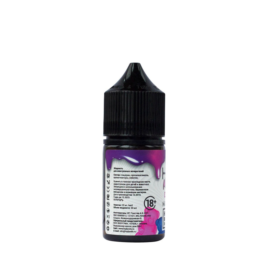 Жидкость HQD MIX IT Мармеладные Мишки - это уникальная солевая жидкость, разработанная специально для использования в электронных сигаретах. Она отличается от обычных жидкостей для заправки электронных сигарет своим составом, включающим солевой никотин. Благодаря этому, никотин быстрее всасывается в организм, обеспечивая более гладкое и эффективное удовлетворение потребности в никотине.